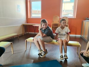 Les plus petits ont pu se reposer et découvrir le parcours sensoriel pieds nus.