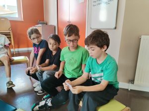 La matinée fut dense : les enfants ont été sensibilisés à l’éducation aux médias, aux dangers d’Internet et des réseaux sociaux à travers 2 activités : l’une sur tablette avec Elise et l’autre sous forme de jeu de société avec la maîtresse.
